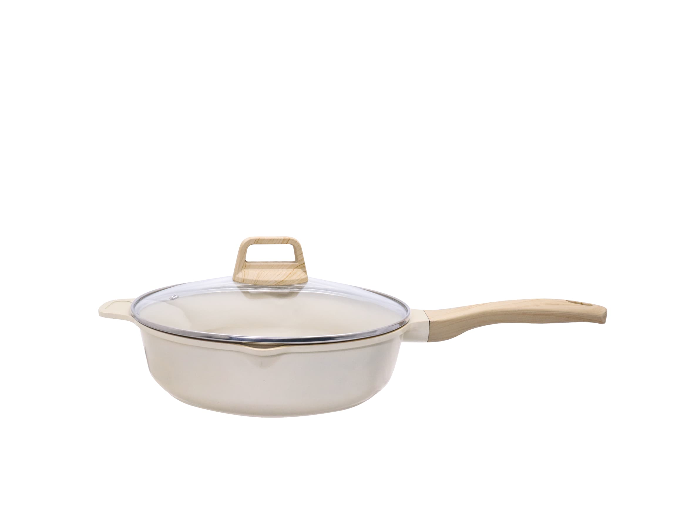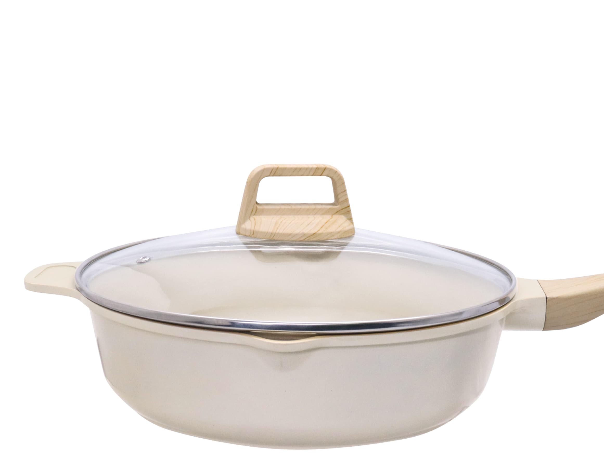 This premium die-cast aluminum deep fry pan features a sleek, modern design with a smooth, easy-to-clean finish, combining durability with contemporary aesthetics. Equipped with a tempered glass lid and ergonomic, wood-effect handles, it locks in flavor and moisture while ensuring safe, comfortable handling. Its induction-compatible base works on all stovetops, and with a practical 28cm size, it’s the perfect choice for deep-frying, searing meats, or preparing large-batch meals.
