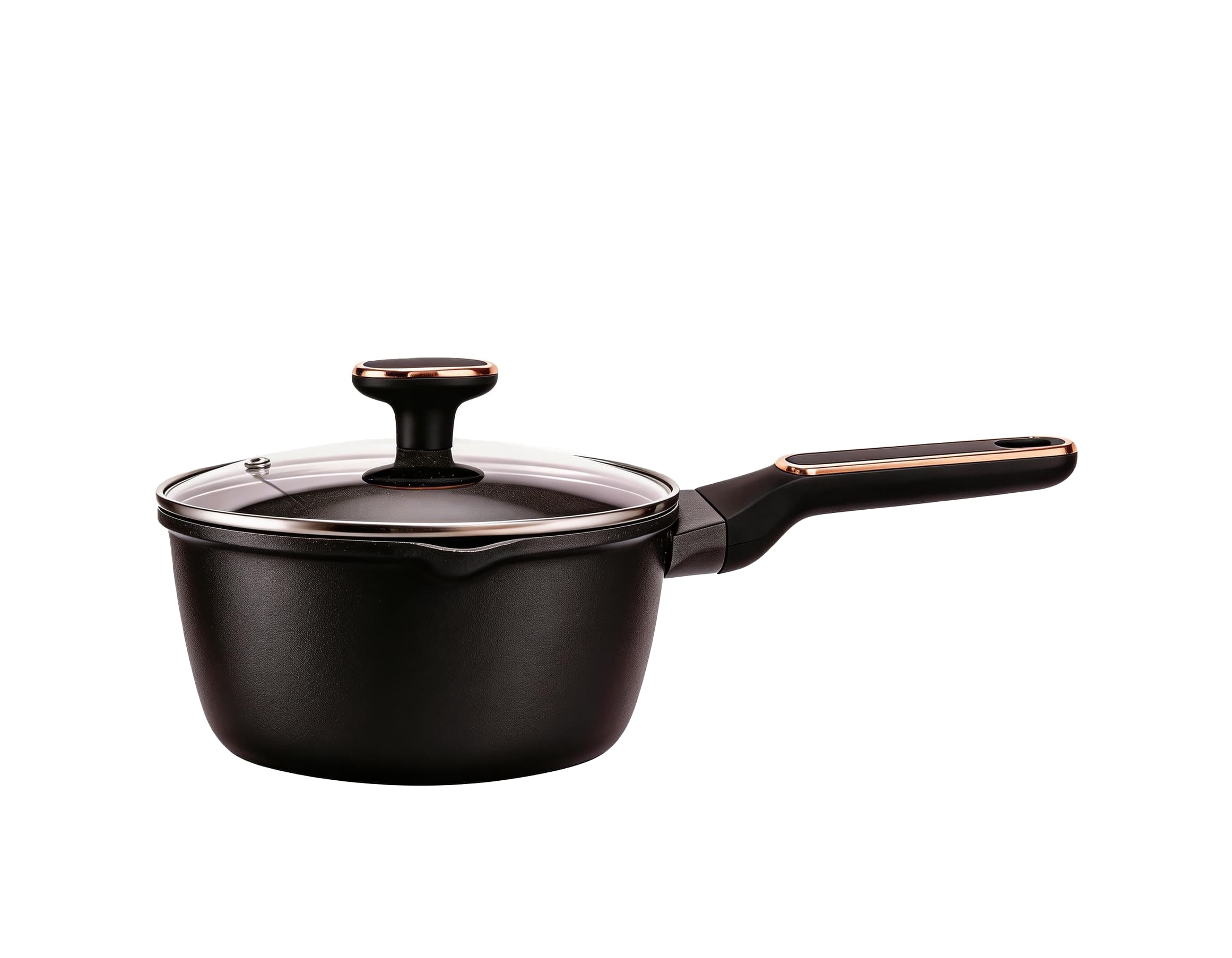 This premium die-cast aluminum saucepan features a sleek dark finish with elegant copper accents, combining durability with modern luxury. Equipped with a tempered glass lid and an ergonomic heat-resistant handle, it locks in flavor and moisture while ensuring safe, comfortable handling. Its induction-compatible base works on all stovetops, and with customizable sizes , it’s the perfect choice for precise cooking tasks like simmering sauces, boiling pasta, or preparing small-batch meals.