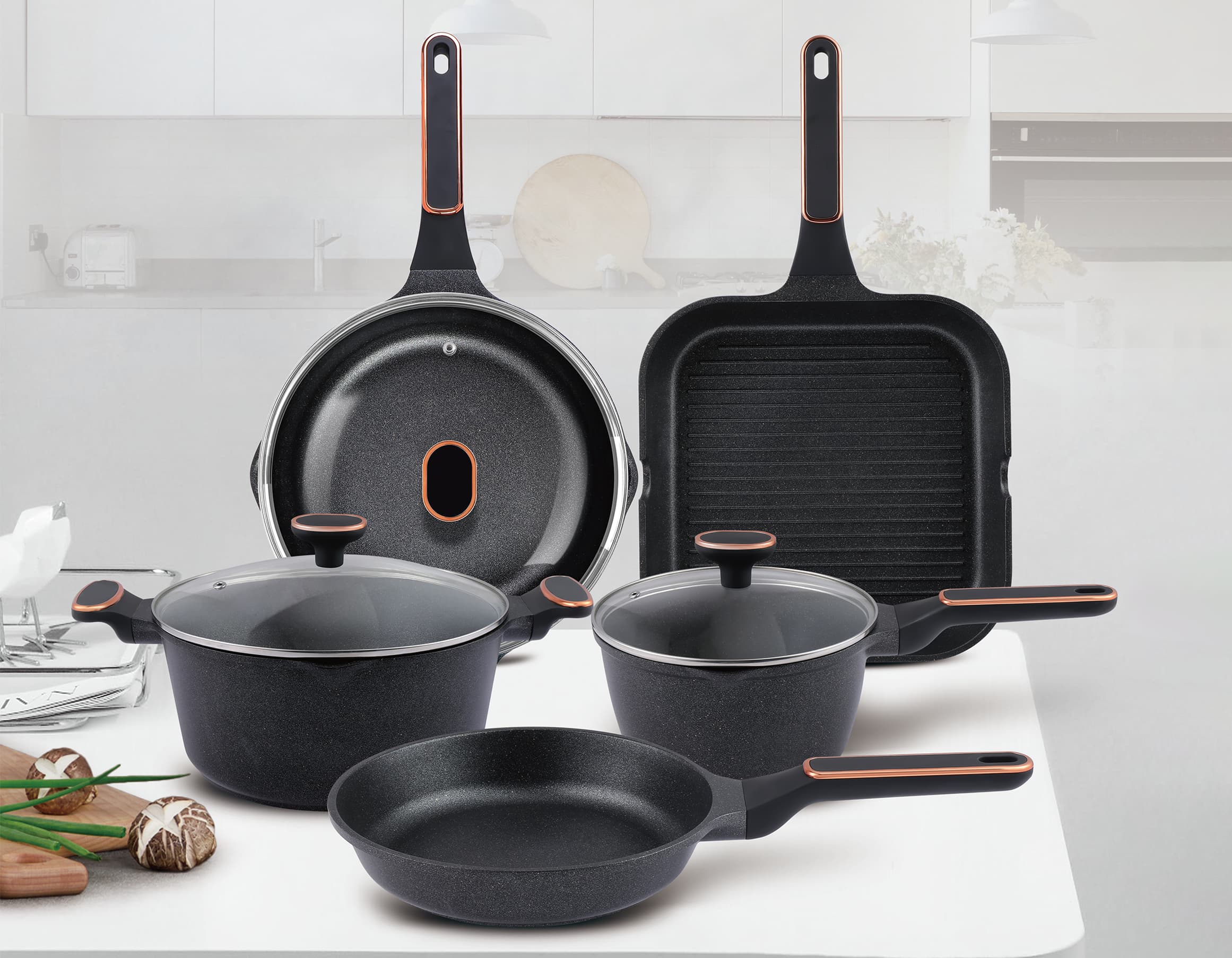 • Complete Versatile Set: Includes fry pan, square fry pan, sauce pan, deep fry pan, and casserole to cover all daily cooking tasks from frying to simmering.