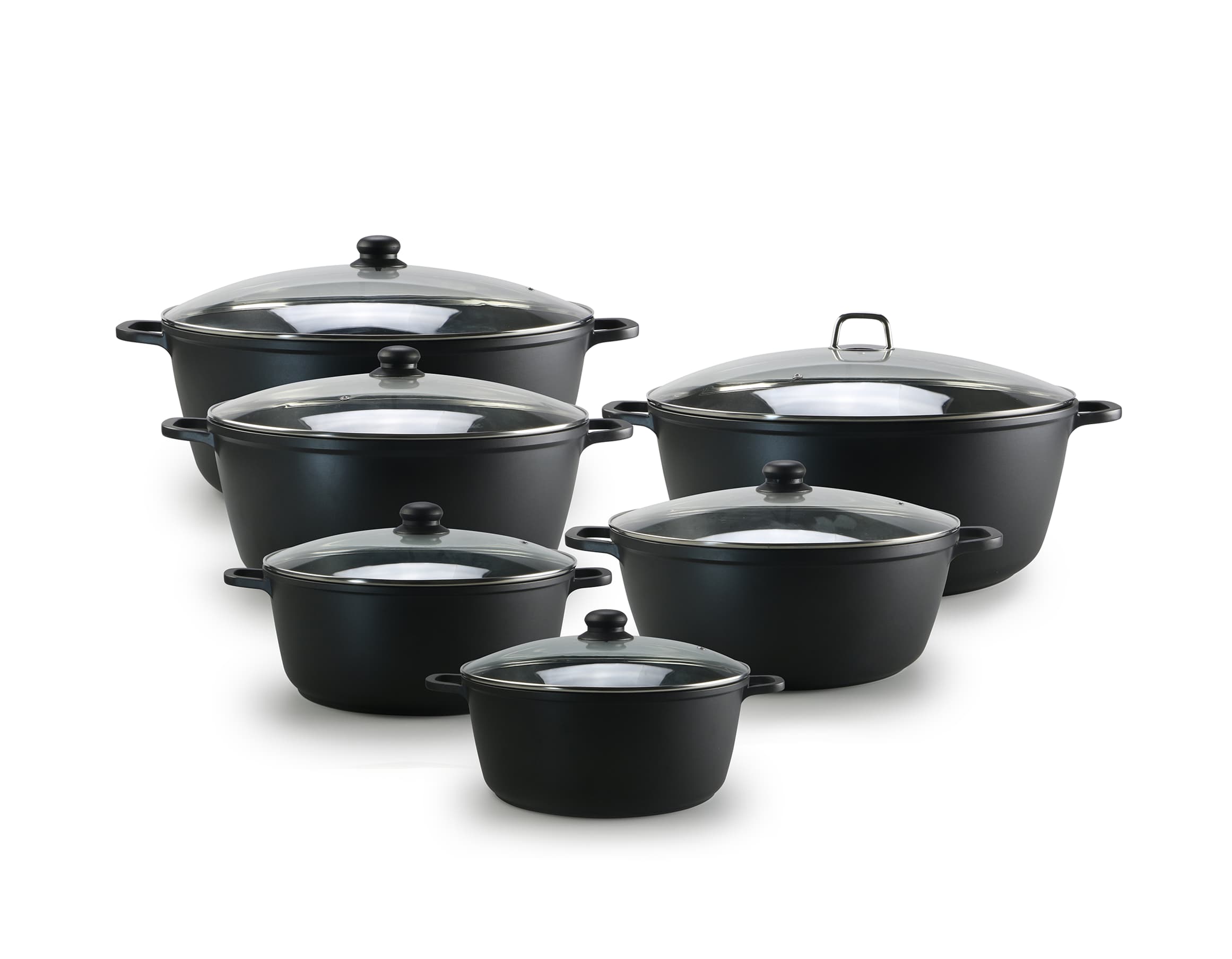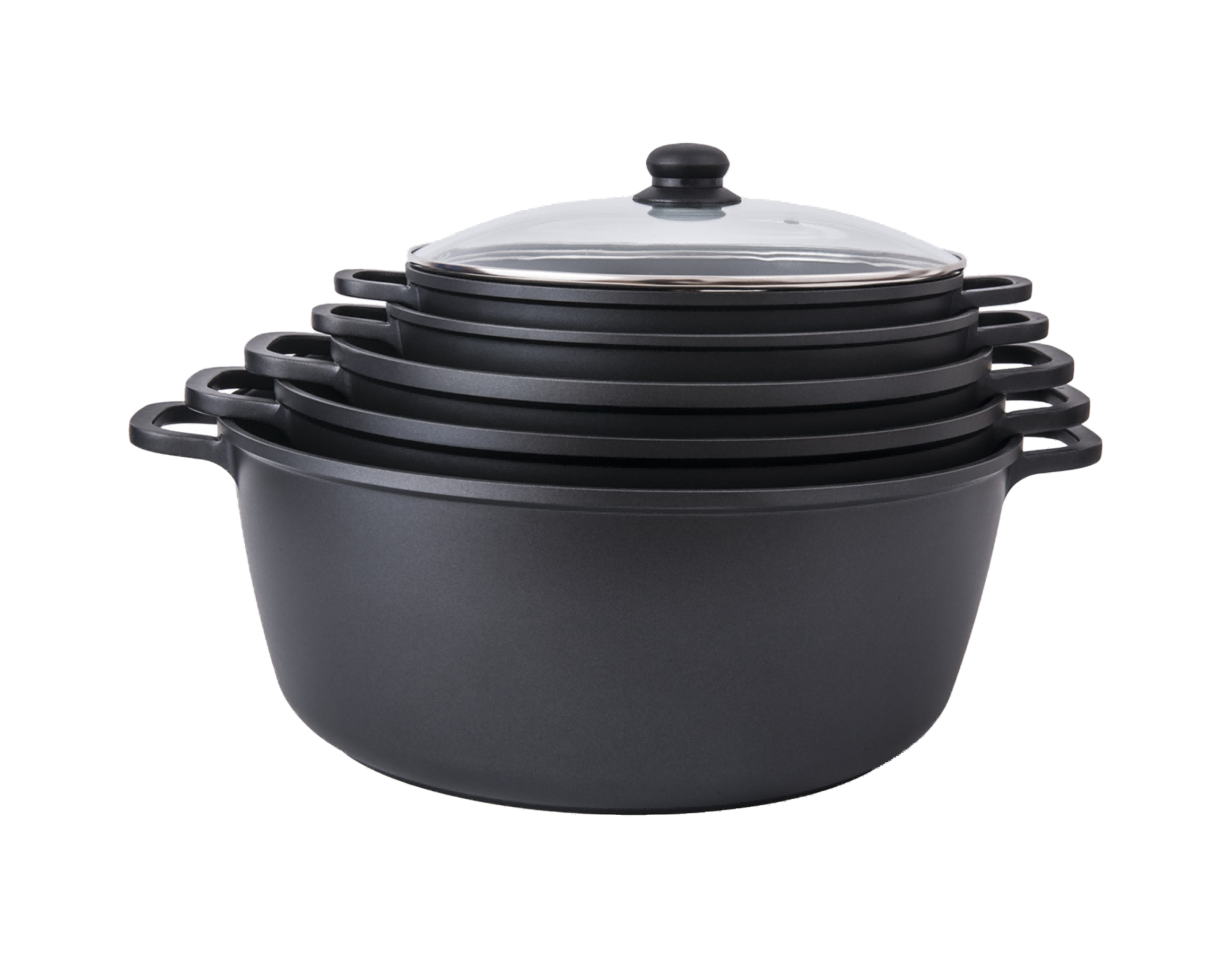 This comprehensive die-cast casserole set features a full range of multi-size pots, designed to cover all your daily cooking and large-family meal needs. Each piece is crafted from durable die-cast aluminum with a standard encapsulated induction base, ensuring uniform heat distribution and compatibility with all stovetops. With fully customizable options for lid handles, pot dimensions, and exterior colors, this set offers complete flexibility to match your brand identity and kitchen style.