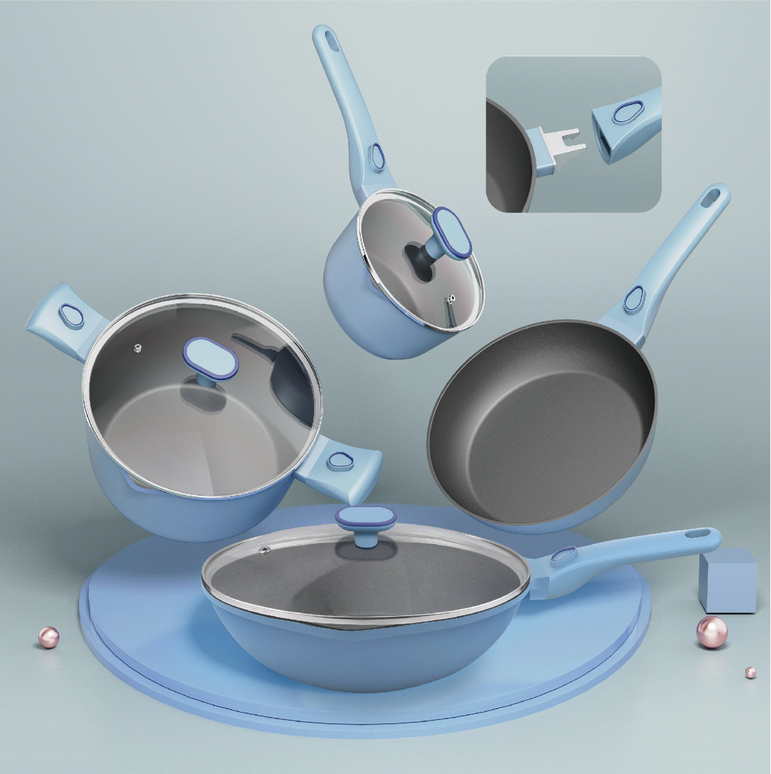 Multi-Functional Detachable Handle Cookware Set