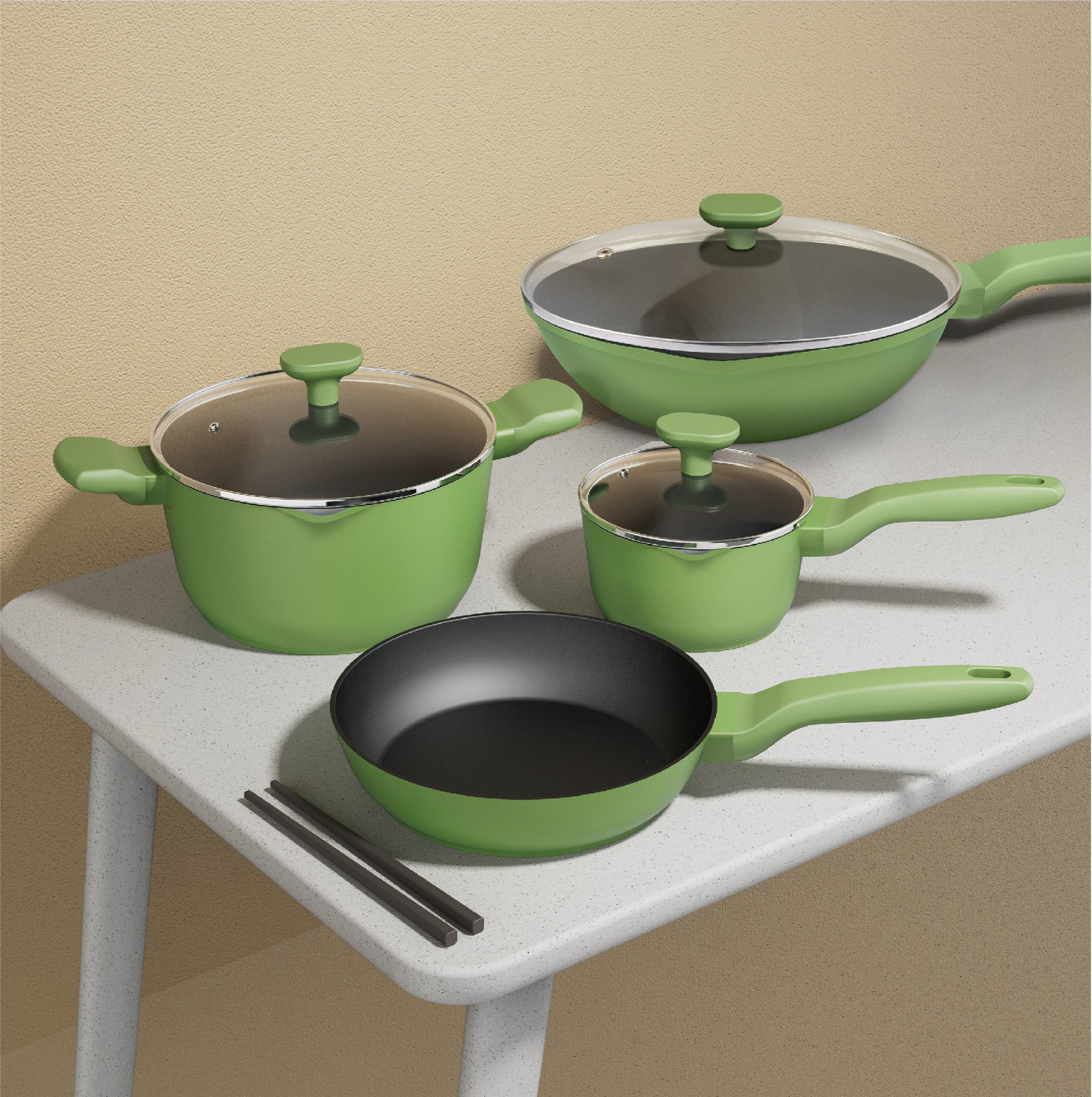 • Complete Set: Includes sauce pan, casserole, fry pan, deep fry pan, square fry pan, and wok to cover all cooking needs.